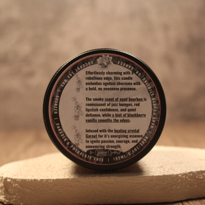 Effortlessly cool with a rebellious edge. For those who embody ageless charm and don’t play by the rules. It’s the scent of smoky jazz lounges, red lipstick confidence, and walking away from anything that doesn’t serve you. Bold, mysterious, and undeniably magnetic—this candle is a reminder that charm and power go hand in hand. Light it. Own it. Leave a lasting impression.